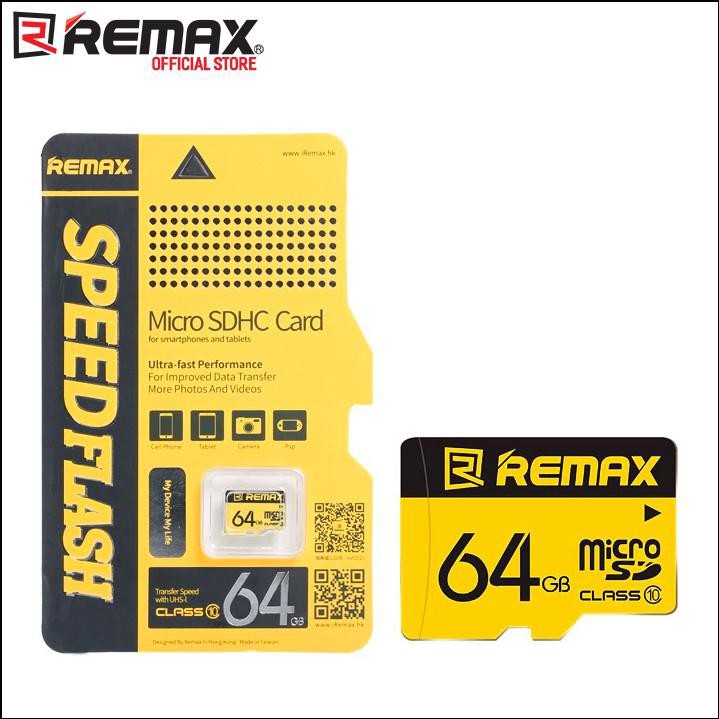 Điện Thoại & Phụ Kiện > Phụ kiện > Thẻ nhớ || Thẻ nhớ Micro SD Remax 64GB tốc độ Class 10Còn hàng