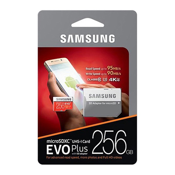 - Loại card: Thẻ nhớ micro SD samsung Evo plus 256GB 100Mbs 4K Video