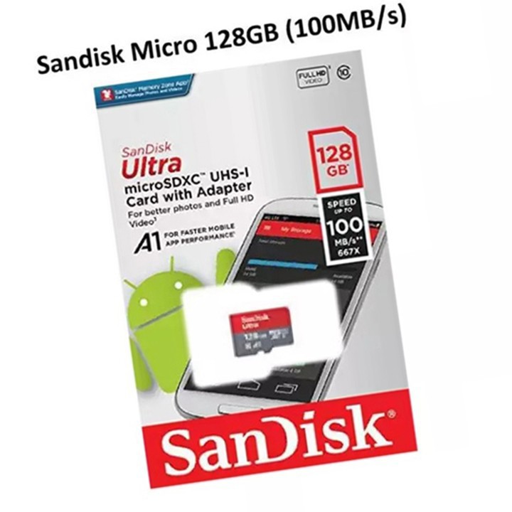 - Loại card: Thẻ nhớ micro SD san disk Ultra A1 128GB SDXC 100Mbs