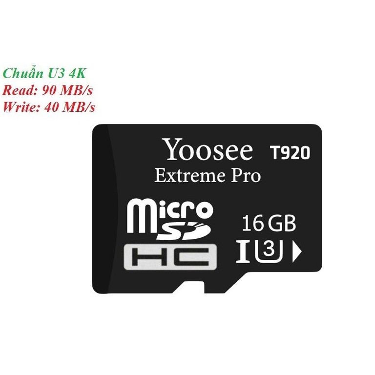 Điện Thoại & Phụ Kiện > Phụ kiện > Thẻ nhớ || Thẻ Nhớ Micro SDHC Yoosee Extreme Pro T920 16GB UHS-I U3 4K 95 MB/S - Cho Camera Và Điện Thoại - Hưng Long PCCòn hàng