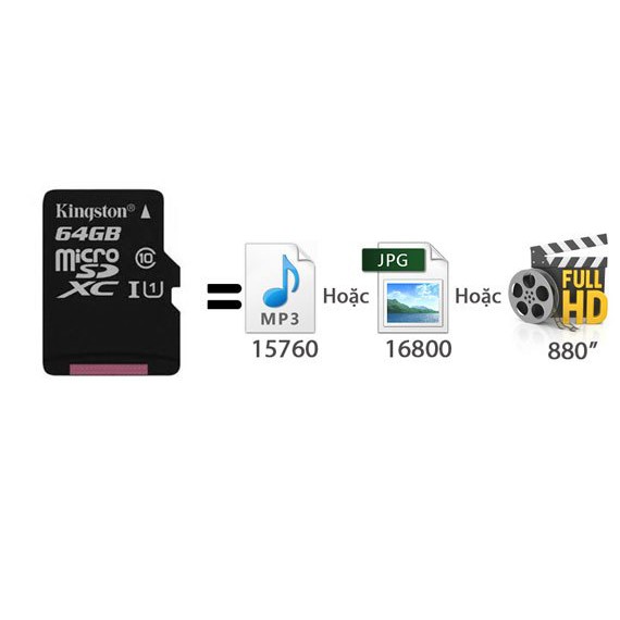 ☼ Thẻ Kingston microSDXC32/64/128GB Class 10 cung cấp cho bạn dung lượng cao dễ dàng kết nối tới các thiết bị lưu trữ di động của bạn.