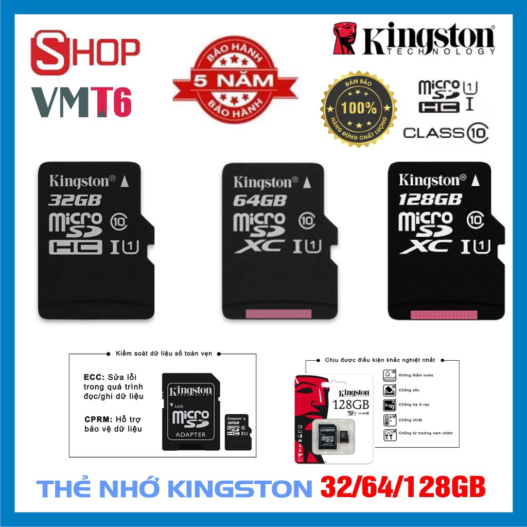 Thẻ nhớ micro SDXC Kingston 32/64/128GB Class 10 kèm Adapter#thenhovmt6