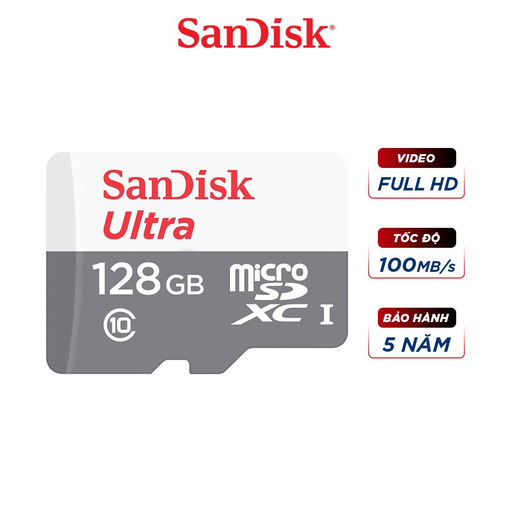 Điện Thoại & Phụ Kiện > Phụ kiện > Thẻ nhớ || Thẻ nhớ micro SDXC Sandisk 128GB upto 100MB/s 533X Ultra UHS-I - chính hãng bảo hành 5 nămCòn hàng