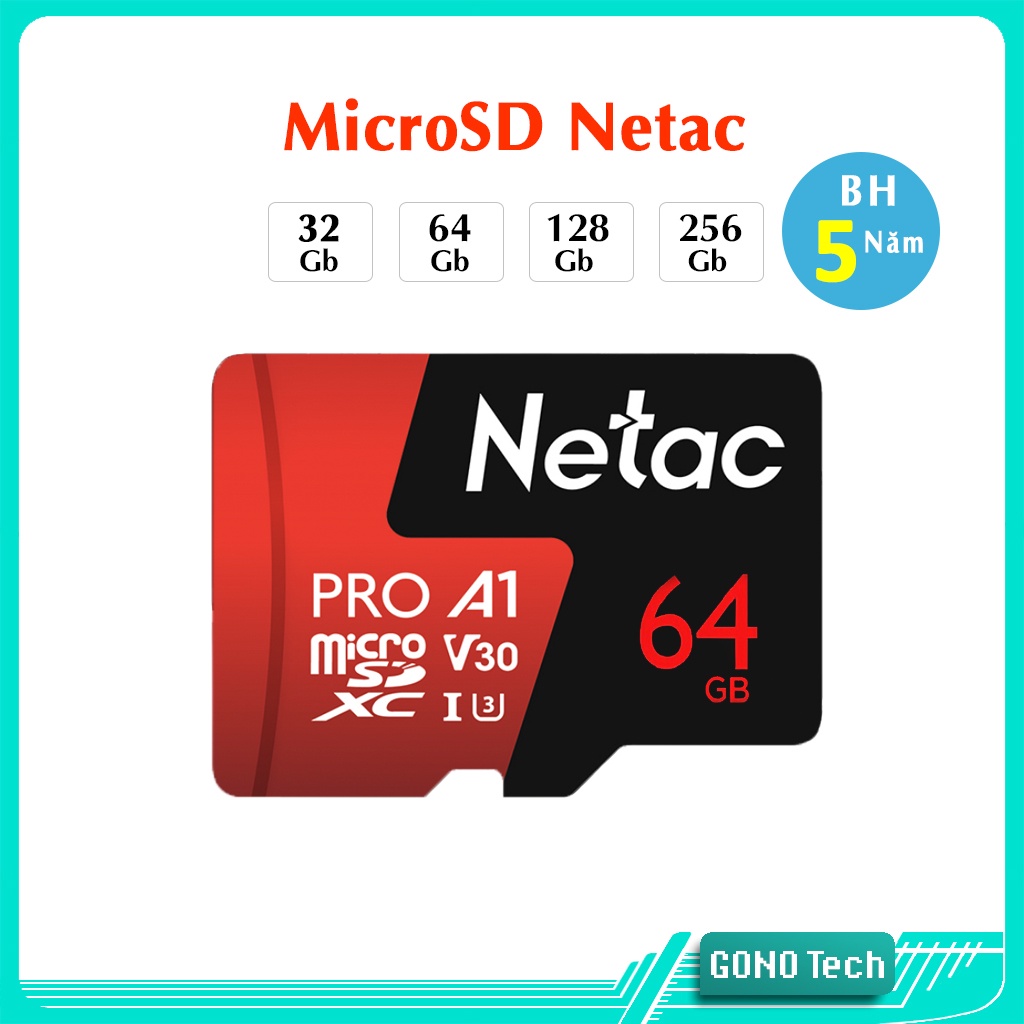 Điện Thoại & Phụ Kiện > Phụ kiện > Thẻ nhớ || Thẻ nhớ MicroSD Netac P500 Pro 32GB 64GB 128GB chuẩn U3 V30 A1 4K | Netac Micro SD (TF Card)Còn hàng