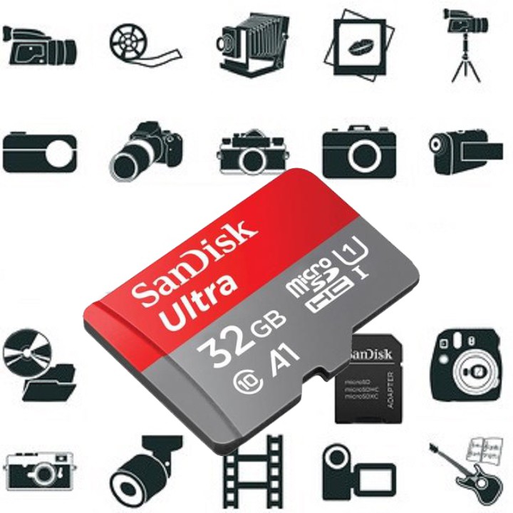 - Thẻ nhớ MicroSD Sandisk Ultra với tốc độ cao, cho phép bạn chụp ảnh chất lượng cao và quay video Full HD rất mượt mà.
