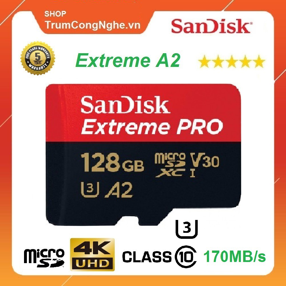 Điện Thoại & Phụ Kiện > Phụ kiện > Thẻ nhớ || Thẻ Nhớ MicroSD SanDisk Extreme Pro A2 - 128GB V30 U3 Class 10 UHS-I 170MB/S Tốc Độ Siêu CaoCòn hàng