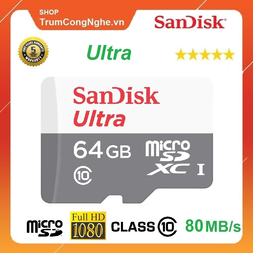 Thẻ nhớ MicroSD Sandisk Ultra 80mb/s 533x Class10 64GB - New 2018