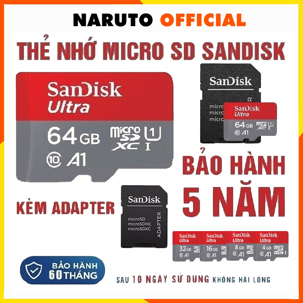 Điện Thoại & Phụ Kiện > Phụ kiện > Thẻ nhớ || Thẻ nhớ MicroSDHC 64GB 32GB SanDisk Ultra Class 10 667x 100MB/sCòn hàng