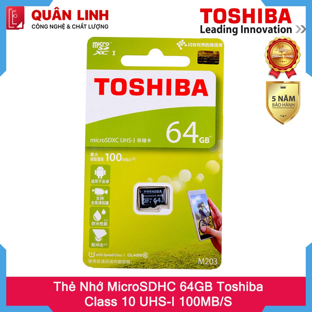 Điện Thoại & Phụ Kiện > Phụ kiện > Thẻ nhớ || Thẻ Nhớ MicroSDHC 64GB Class 10 UHS-I 100MB/s Toshiba - hàng phân phối bởi FPTCòn hàng