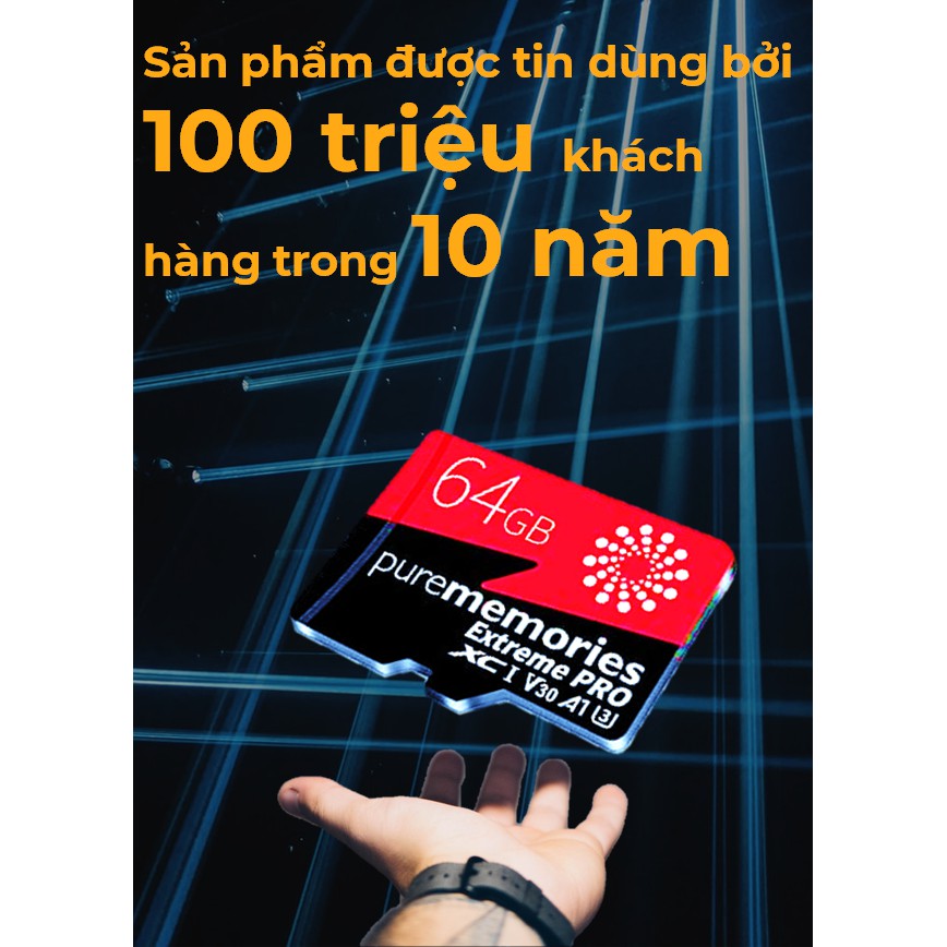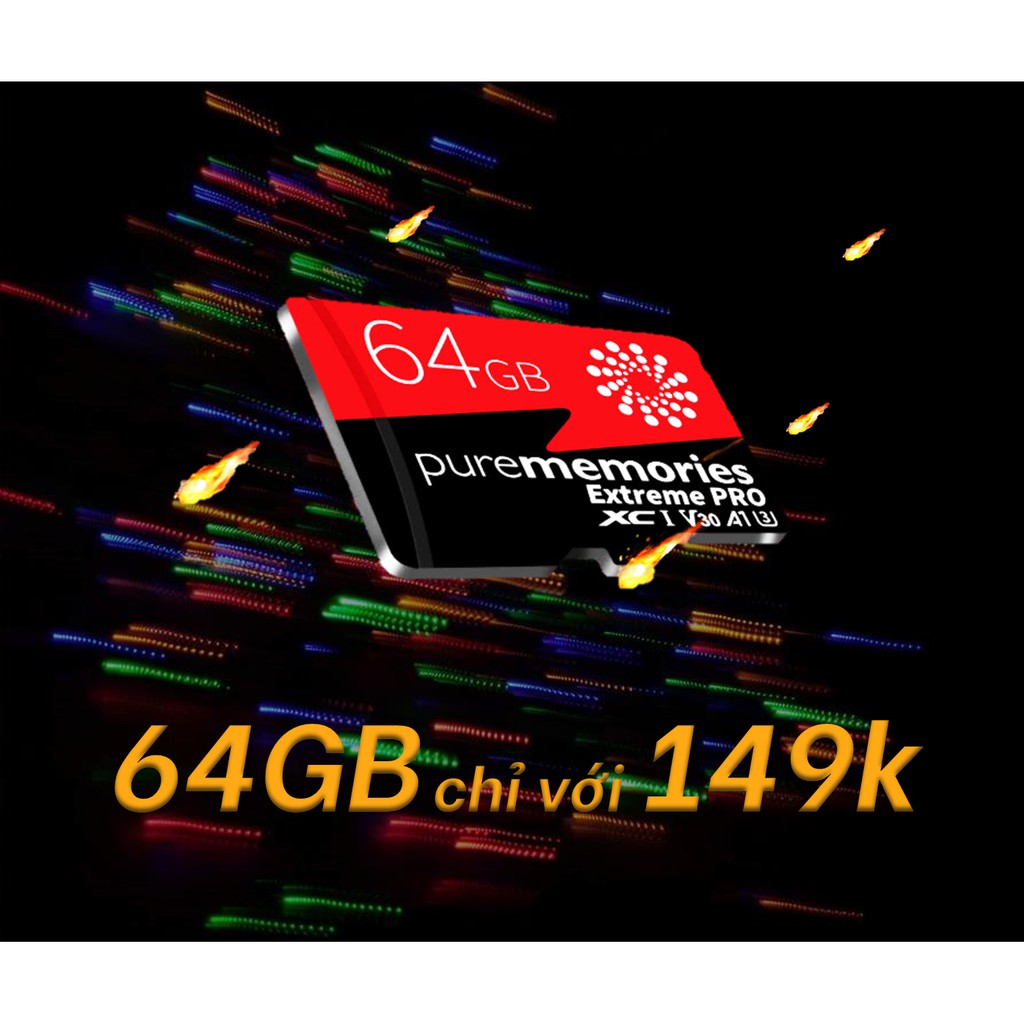 Thẻ nhớ 64GB/32GB purememories Pro U3 Class 10–chuyên dụng cho CAMERA, Điện thoại, Máy ảnh, tốc độ cao 95Mb-140Mb/s bảo hành 10 năm 1 đổi 1Đặc điểm nổi bật: