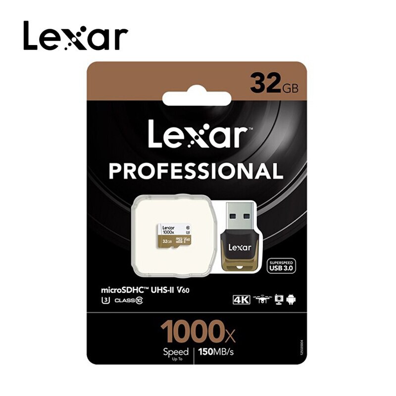 Hiệu suất cấp chuyên nghiệp cho người dùng thiết bị di độngĐược thiết kế cho máy quay thể thao, máy tính bảng hoặc điện thoại thông minh, Lexar ® Professional 1000x microSDHC ™ / microSDXC ™ UHS-II thẻ cho phép bạn nhanh chóng nắm bắt, phát lại, và chuyển giao đa phương tiện tác phẩm, bao gồm độ phân giải 1080p full-HD, 3D, và 4K video, với tốc độ truyền đọc lên tới 1000 lần (150MB / giây). * Thẻ tận dụng công nghệ UHS-II (UHS Speed Class 3 (U3)) để có hiệu suất tốc độ cao và bao gồm bộ chuyển đổi SD ™ UHS-II.