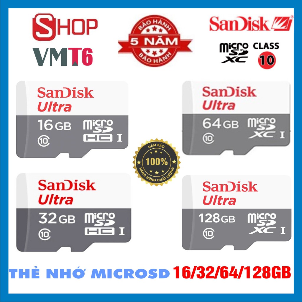 Thẻ nhớ MicroSDHC SanDisk Ultra 16GB/32GB/64GB/128GB tốc độ đọc 80MB/s - Ghi 10MB/s Hàng bảo hành 5 năm !!!!