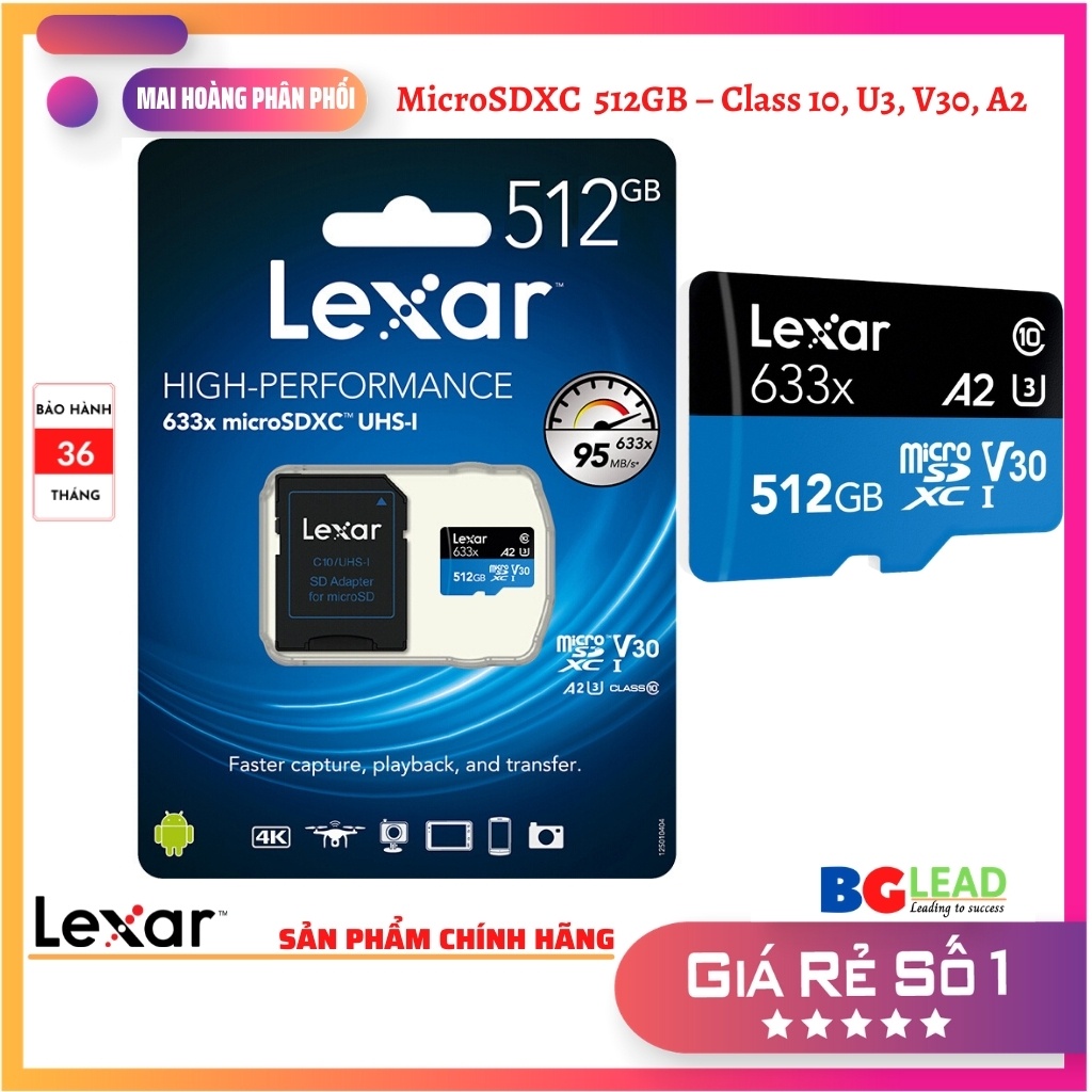 Giới thiệu Thẻ nhớ MicroSDXC 512GB – Class 10, U3, V30, A2 - Có Adapter chuyển SD