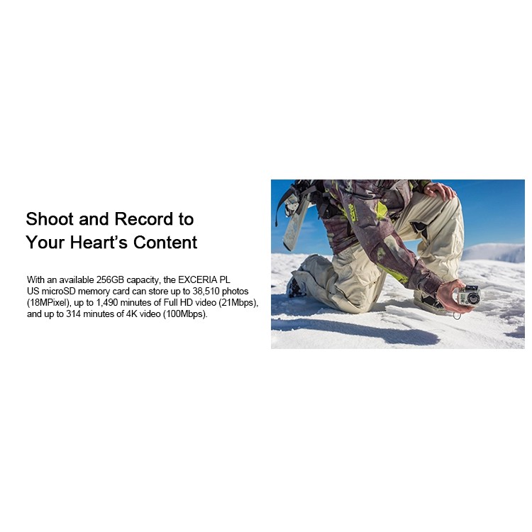 Hiệu suất cao và kích thước nhỏ làm cho thẻ nhớ microSD EXCERIA PLUS trở thành sự lựa chọn tốt cho các máy ảnh thể thao và hành động, và flycam.