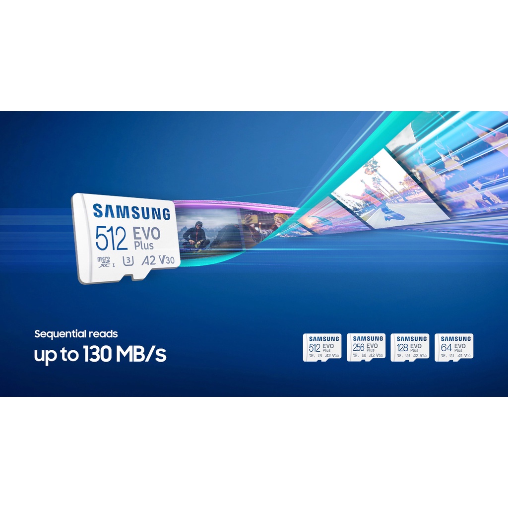 Thẻ nhớ MicroSD Samsung Evo Plus U1 A1 V10 130MB/s có dung lượng từ 64GB đến 512GB, Đáp ứng mọi nhu cầu lưu trữ của bạn.
