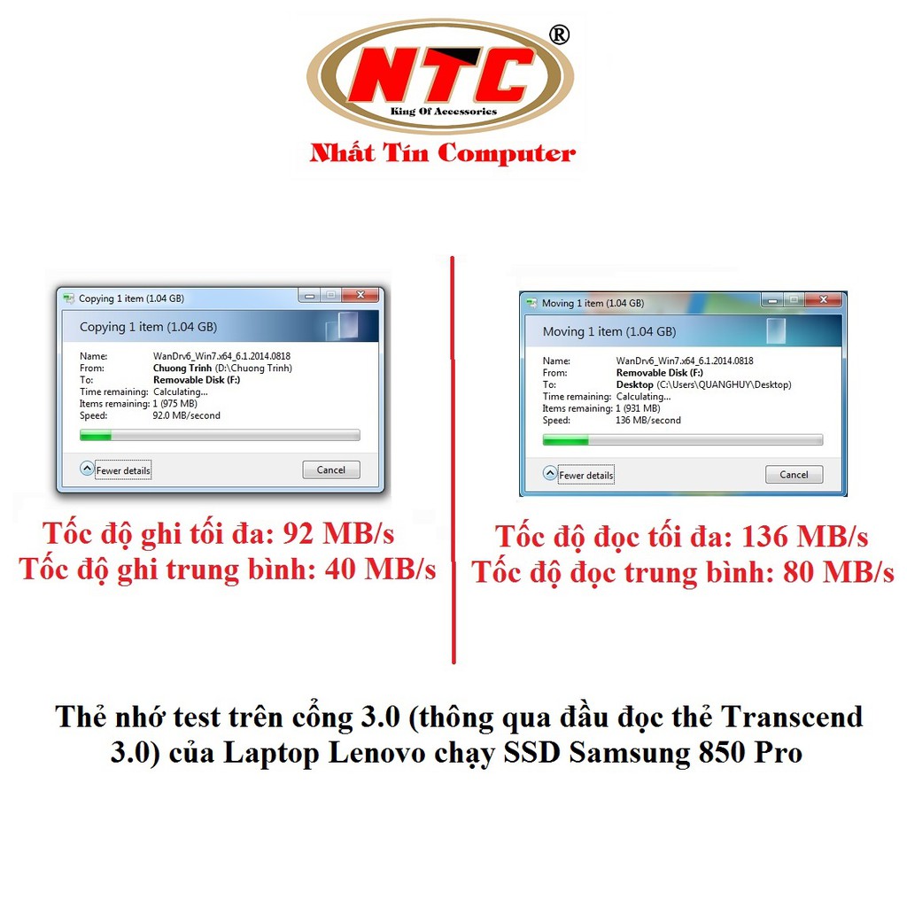 Tốc độ đọc tối đa: ~140 Mb/s - trung bình: 90MB/s