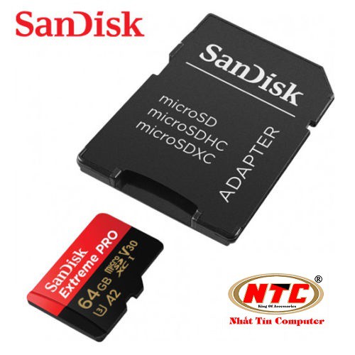 Thẻ Nhớ MicroSDXC SanDisk Extreme Pro V30 U3 4K A2 64GB R170MB/s W90MB/s (Đen đỏ)