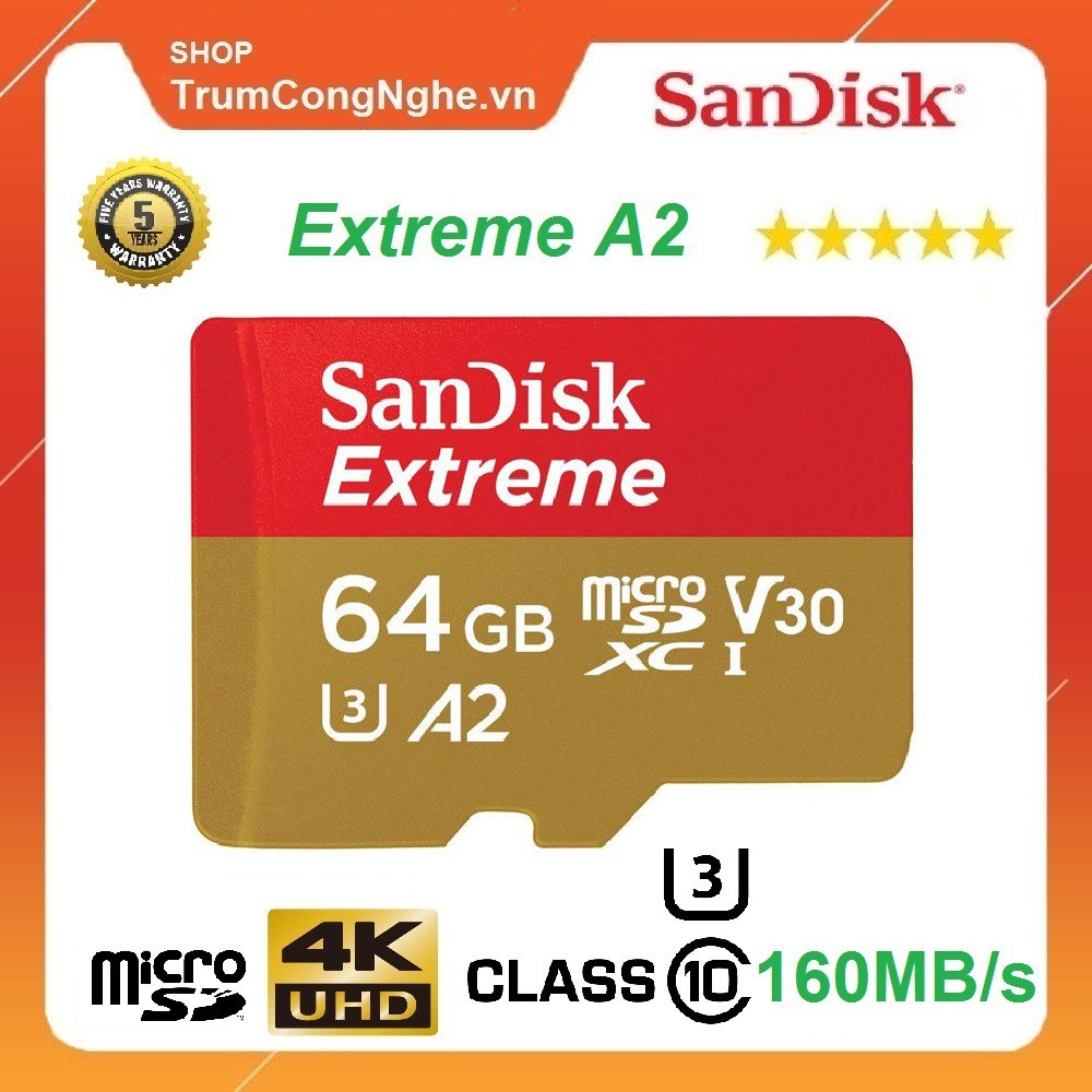 Thẻ Nhớ MicroSDXC SanDisk Extreme V30 U3 4K A2 64GB 160MB/s - Tốc độ cao