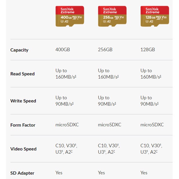 - Model: MicroSD Extreme A2 V30 UHS-3 4K With Adapter