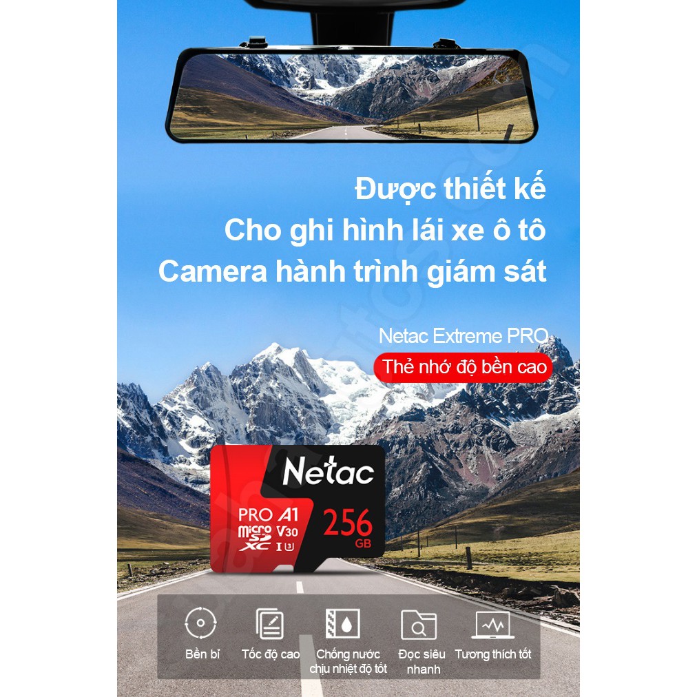 Điện Thoại & Phụ Kiện > Phụ kiện > Thẻ nhớ || Thẻ nhớ Netac 256GB Pro Micro SDXC TF Memory Card Data Storage V30/UHS-I U3 High Speed Up to 100MB/sCòn hàng