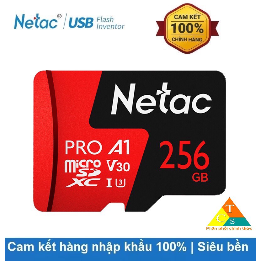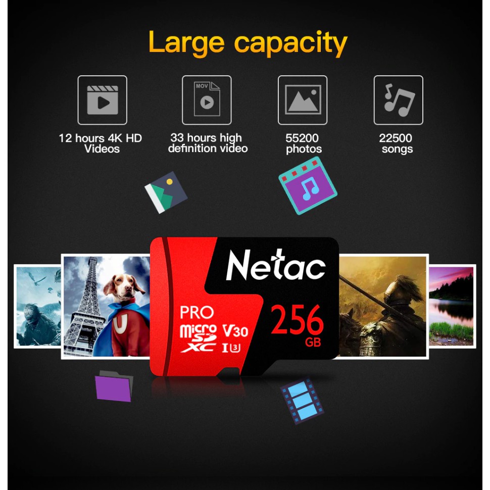 Thẻ nhớ Netac 256GB Pro Micro SDXC TF Memory Card Data Storage V30/UHS-I U3 High Speed Up to 100MB/s
