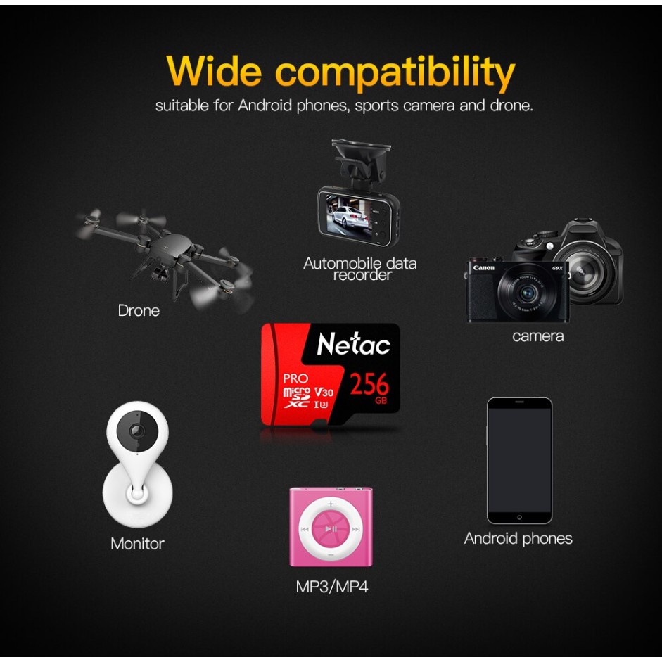 Giới thiệu Thẻ nhớ Netac 256GB Pro Micro SDXC TF Memory Card Data Storage V30/UHS-I U3 High Speed Up to 100MB/s
