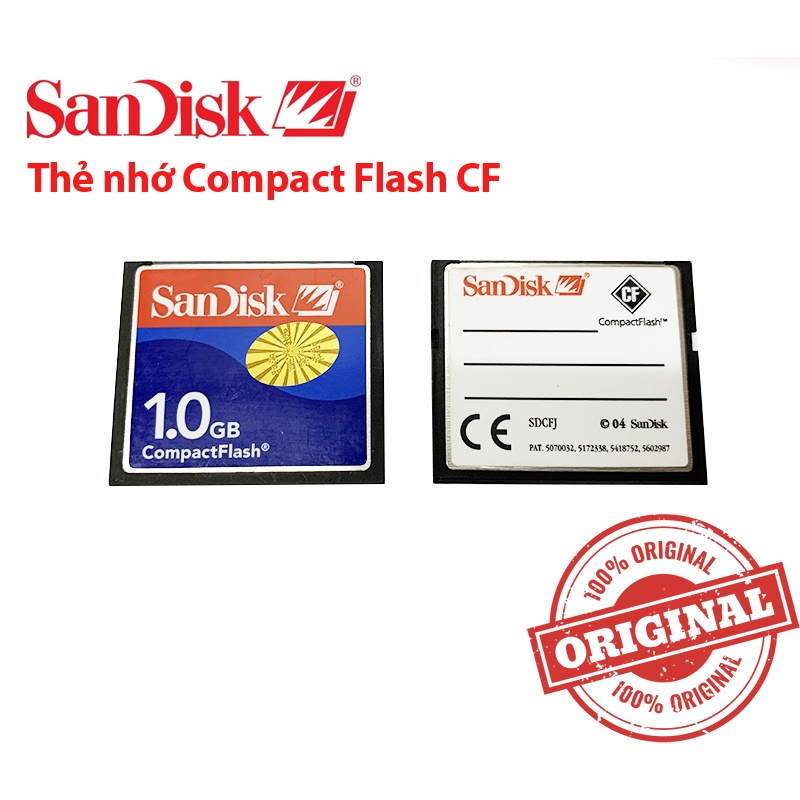 Thẻ nhớ SanDisk CF Compact Flash Memory Card (CF card) dung lượng 1GB dung lượng thấp. Chuyên dùng cho máy CNC, PLC, máy tính công nghệp, lưu trữ data cho máy PLC...Cung cấp các loại thẻ nhớ CF, CF công nghiệp industrial dung lượng từ 32Mb, 64Mb, 128mb, 256mb, 512mb, 1gb, 2gb, 4gb, 8gb...
