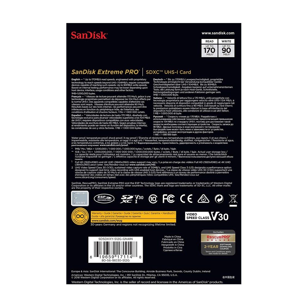 🎊 Thẻ nhớ SanDisk Extreme PRO SDXC UHS-I Speed Class 3 Thẻ nhớ SanDisk Extreme PRO SDXC UHS-I Speed Class 3 là dòng thẻ nhớ phân khúc tốc độ thuộc hàng nhanh của SanDisk, cung cấp tốc độ cực khủng để đáp ứng yêu cầu của chất lượng video 4K UHD trên máy ảnh DSLR, máy ảnh kỹ thuật số hoặc máy quay video HD. Với tốc độ truyền dữ liệu lên đến 170MB/s giúp di chuyển dữ liệu của bạn nhanh chóng, tốc độ ghi lên đến 90MB/s xử lý các chế độ chụp nhanh, chụp liên tiếp và chụp RAW với JPEG cực kỳ dễ dàng. Tất cả các sản phẩm SanDisk được sản xuất với tiêu chuẩn cao và đã được thử nghiệm chặt chẽ, vì vậy bạn có thể tự tin vào chất lượng vượt trội, hiệu suất và độ tin cậy của mỗi sản phẩm SanDisk.