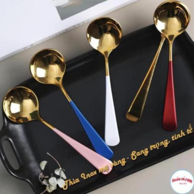 Thìa Inox Mạ Vàng Cán Dài Nhiều MàuChị em nội trợ đâu hết rùi nhỉ