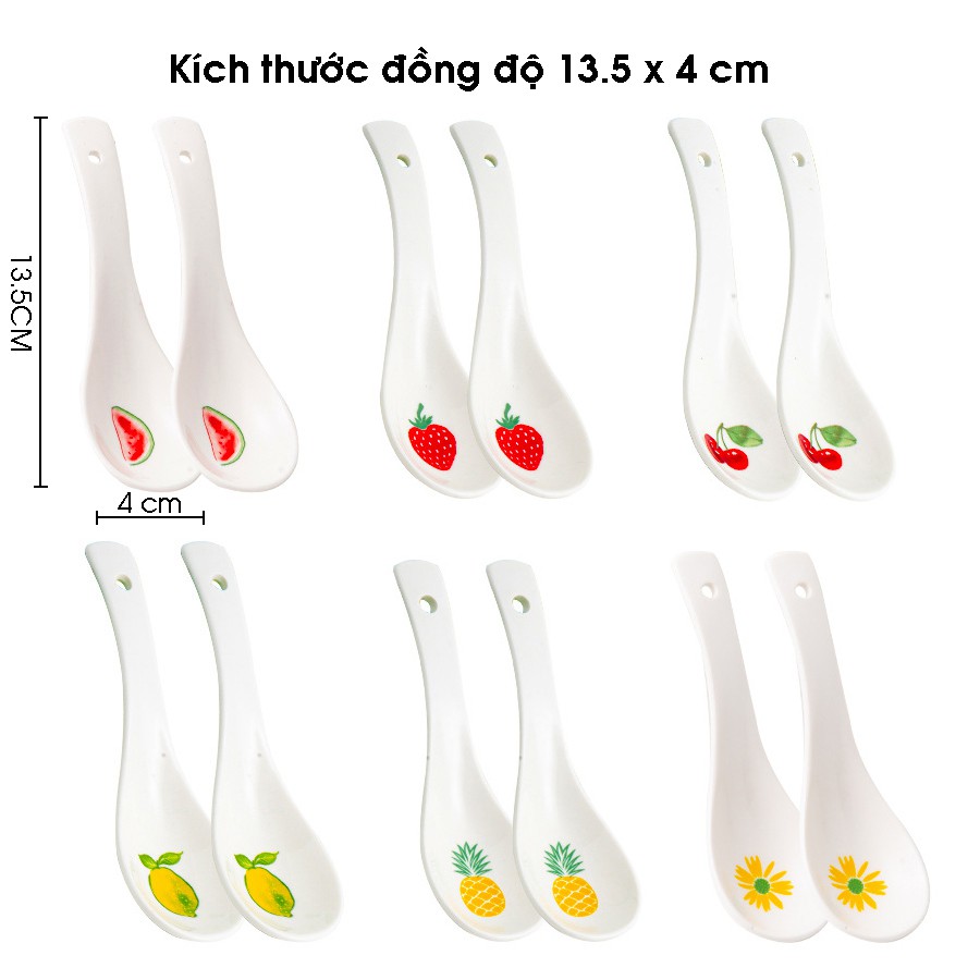 + Thìa có 6 họa tiết cực xinh: Quả cherry, quả Dứa, quả Chanh, Dưa hấu, Quả dâu và họa tiết Hoa cúc.