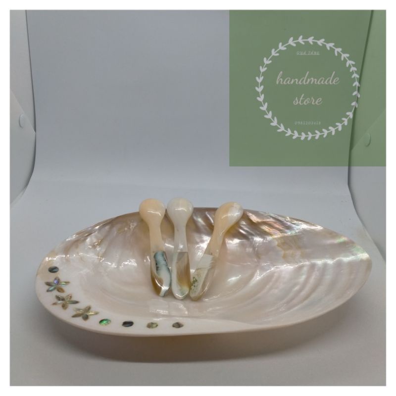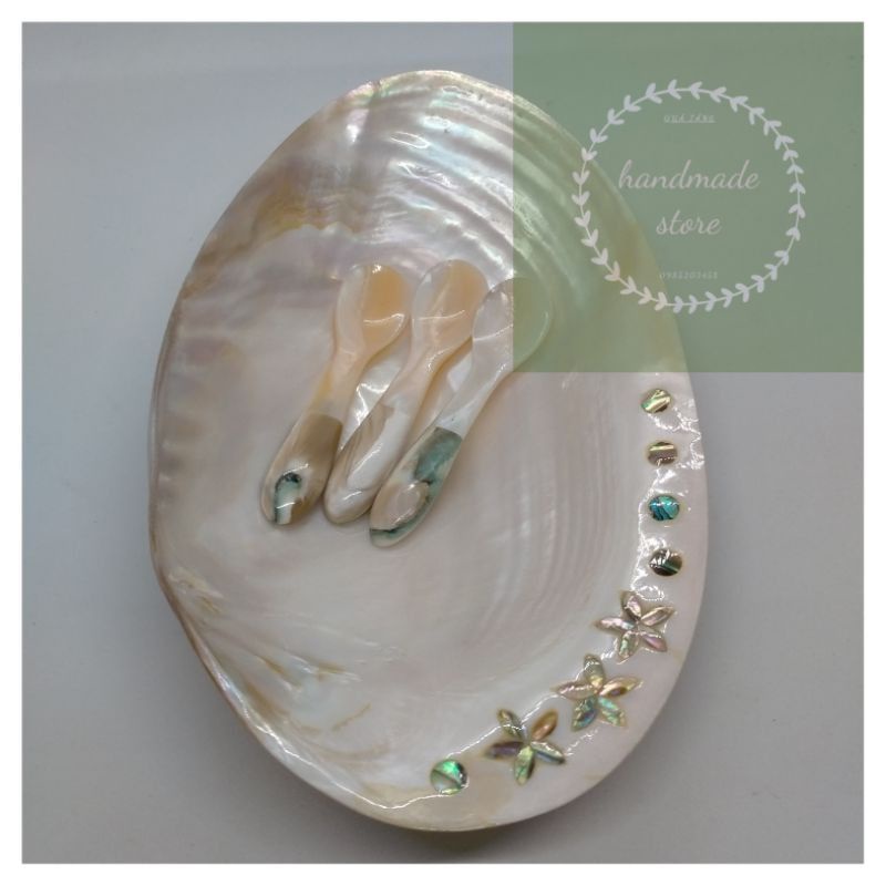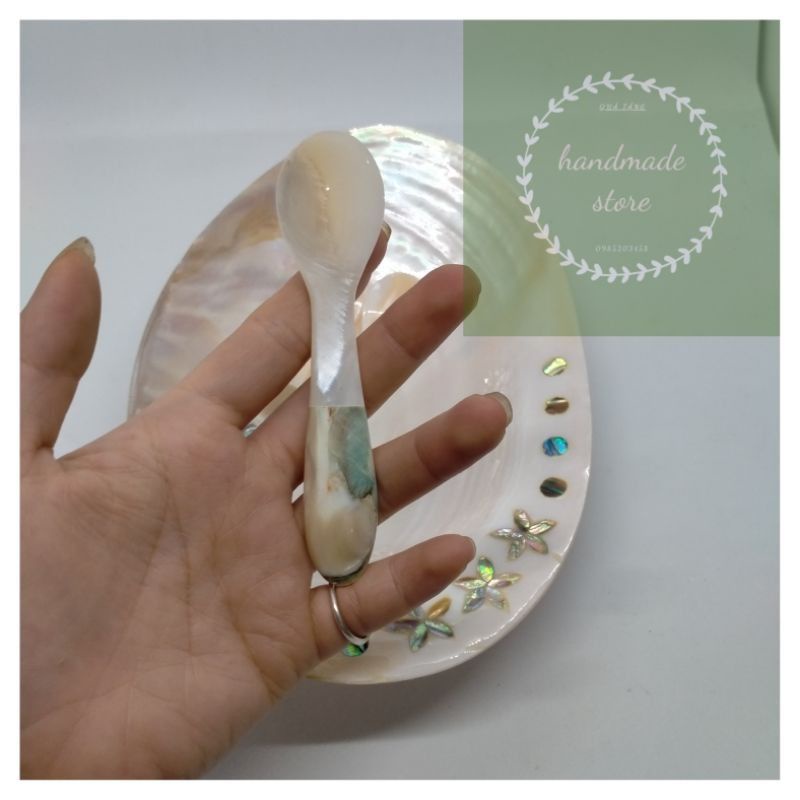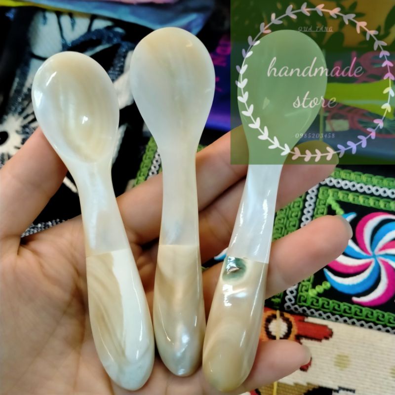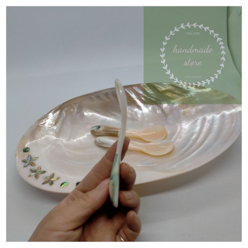 Thìa bằng vỏ trai cán ốc xanh cao cấp - muỗng bằng vỏ trai cán ốc xanh