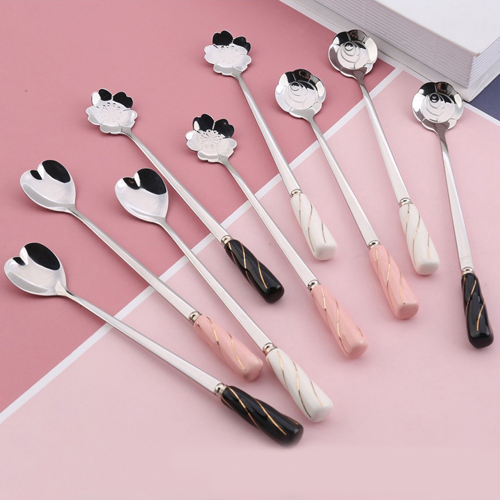 Thìa cafe, muỗng cà phê bọc sứ inox 304 cao cấp, sang trọng hoa văn siêu đẹp trang trí bàn ăn, decor... MTC05