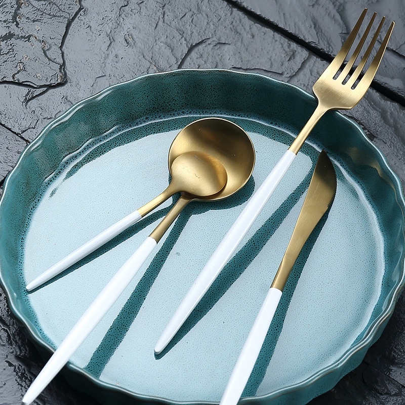 Thìa dao dĩa inox 304 mạ vàng , muỗng ăn , thìa cafe sinh tố dày dặn inox nguyên khối