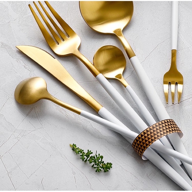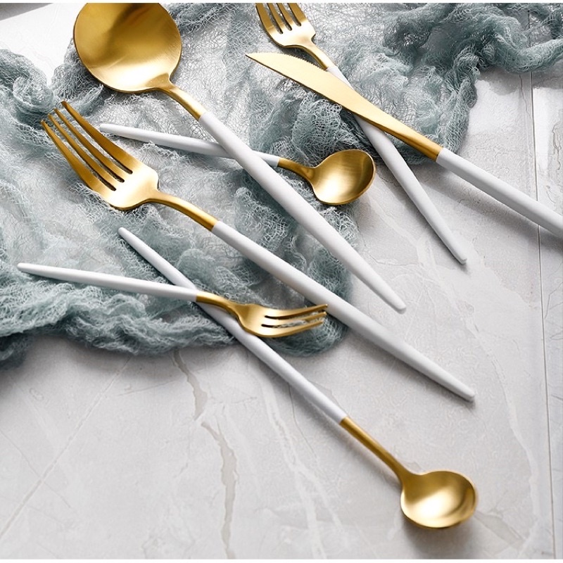 THÌA DĨA DAO ĐŨA INOX MẠ TITAN VÀNG, CÁN TRẮNGCHẤT LIỆU