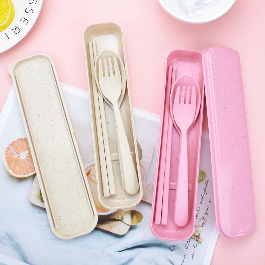 Bộ thìa, dĩa, đũa bằng lúa mạch - Bộ dụng cụ ăn uống văn phòng an toàn, thân thiện môi trường Molangshop