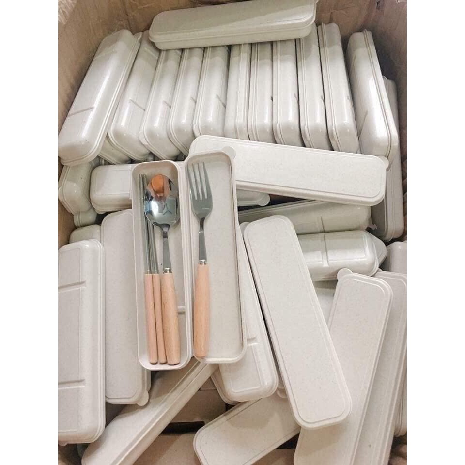Nhà cửa & Đời sống > Bộ đồ bàn ăn > Bộ dao kéo || Bộ Thìa Dĩa Đũa Inox Cán Gỗ Kèm Hộp Đựng Lúa Mạch Nhỏ Xinh Tiện LợiCòn hàng