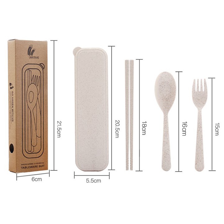 Bộ thìa dĩa đũa muỗng nhựa lúa mạch có hộp cá nhân tiện lợi văn phòng học sinh viên vệ sinh an toàn nhiều màu