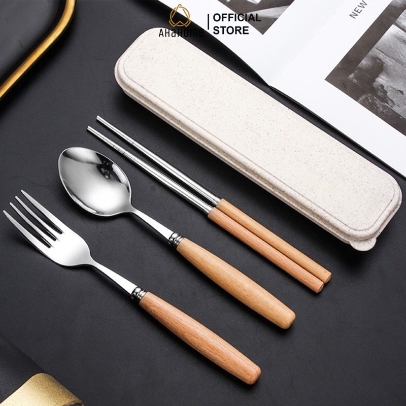 Nhà cửa & Đời sống > Bộ đồ bàn ăn > Bộ dao kéo || Bộ thìa đũa Ahahome cá nhân văn phòng lúa mạch cán gỗ inoxiCòn hàng