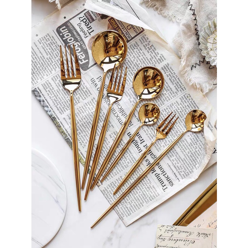 Nhà cửa & Đời sống > Bộ đồ bàn ăn > Bộ dao kéo || Thìa, đũa, dĩa, dao phong cách Bắc Âu cao cấp,[VIDEO TỰ QUAY], thiết kế tinh tế độc đáo, màu vàng bóngCòn hàng