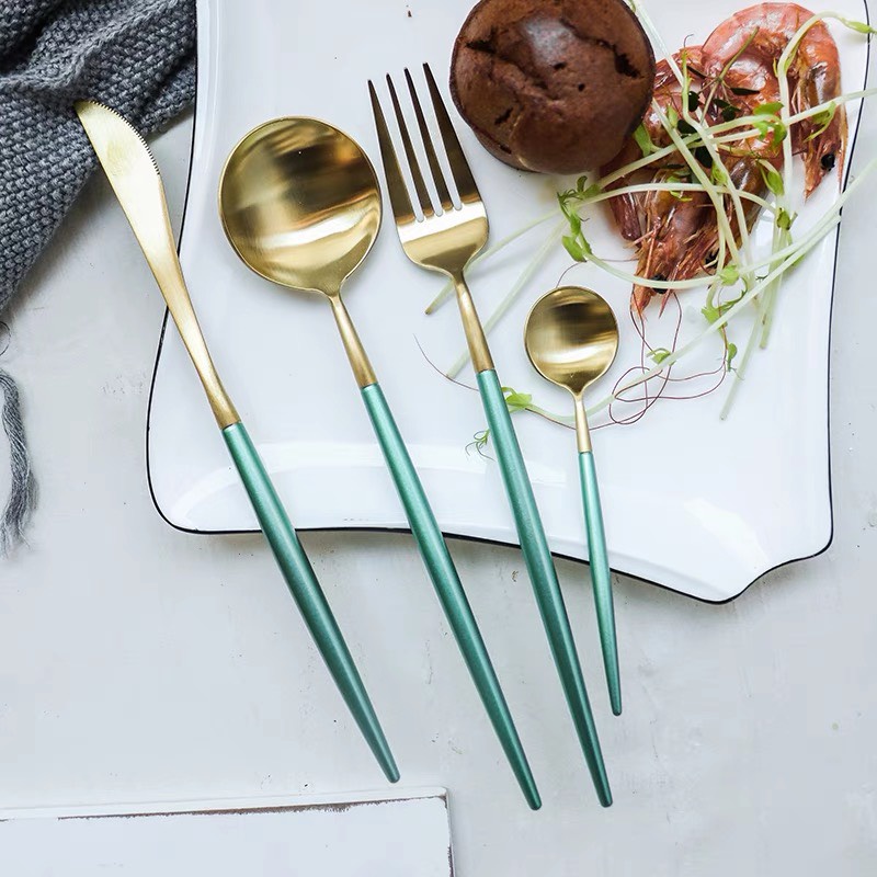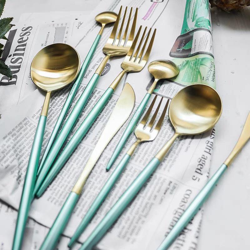Nhà cửa & Đời sống > Bộ đồ bàn ăn > Bộ dao kéo || Thìa, đũa, dĩa, dao phong cách Bắc Âu cao cấp, thiết kế tinh tế độc đáo, màu vàng cán xanh tươi mắt, tinh tếCòn hàng