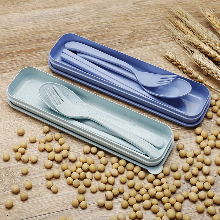 Bộ thìa đũa dĩa nhựa lúa mạch an toàn sức khỏe có hộp vệ sinh Dụng cụ ăn uống học sinh viênSet dụng cụ cá nhân văn phòng