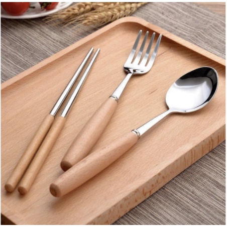 Bộ thìa đũa dĩa văn phòng lúa mạch cán gỗ