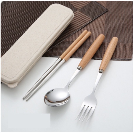 - Chất liệu: bộ đồ ăn inox cán gỗ sồi với hộp đựng bằng nhựa lúa mạch với các chi tiết: 01 đôi đũa, 01 chiếc dĩa, 01 chiếc thìa, 01 hộp đựng- Kích thước: