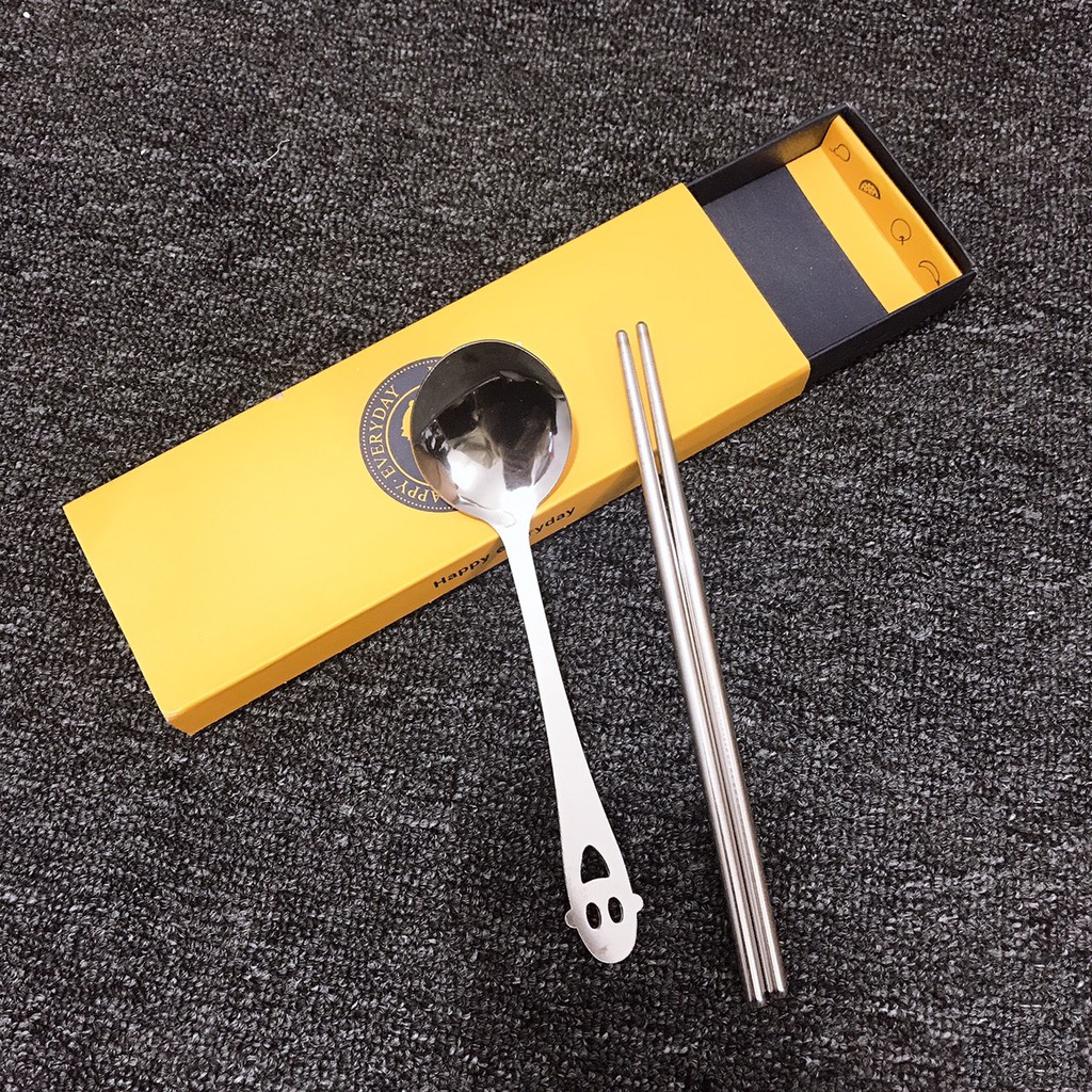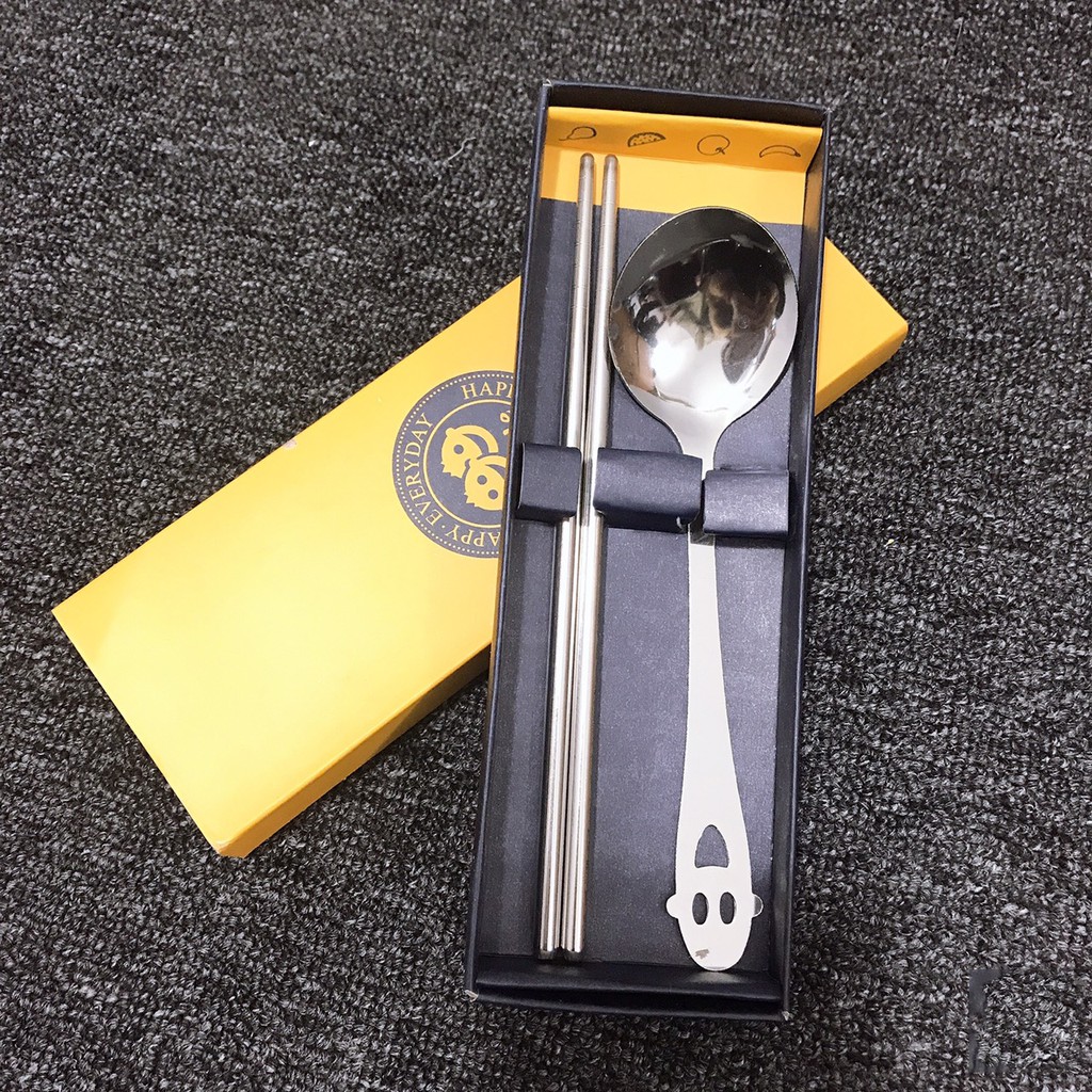 Bộ Thìa Đũa Inox 305 Hình Mặt Cười Siêu Cute - Thìa Đũa Văn Phòng