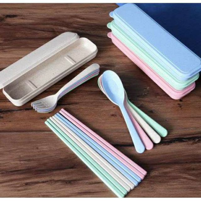 Nhà cửa & Đời sống > Bộ đồ bàn ăn > Bộ dao kéo || Bộ thìa + đũa + muỗng làm từ thân lúa mạch kèm hộpCòn hàng