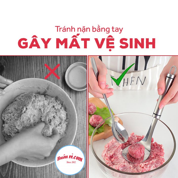 Bạn muốn nặn những viên thịt trông thật ngon và đẹp mắt ? Nặn bằng găng tay độ vệ sinh cũng chỉ ở mức khá , không những thế thịt viên không được tròn đẹp , hơn nữa mùi còn vương lại ở tay! Muôi nặn thịt viên sẽ giải quyết vấn đề cùng bạn, và khiến cho thực đơn gia đình đa dạng và phong phú hơn trong từng món ăn!