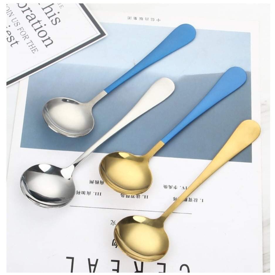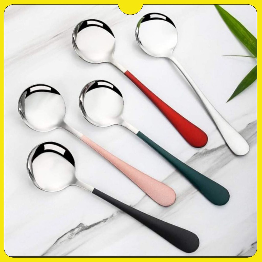 ✔️ Thìa Inox Cán Dài Nhiều Màu Với thiết kế tròn, rộng phù hợp khuôn miệng, dễ dàng xúc cơm, soup, cháo...