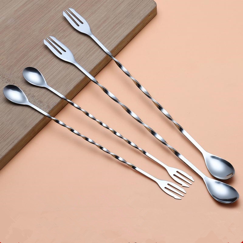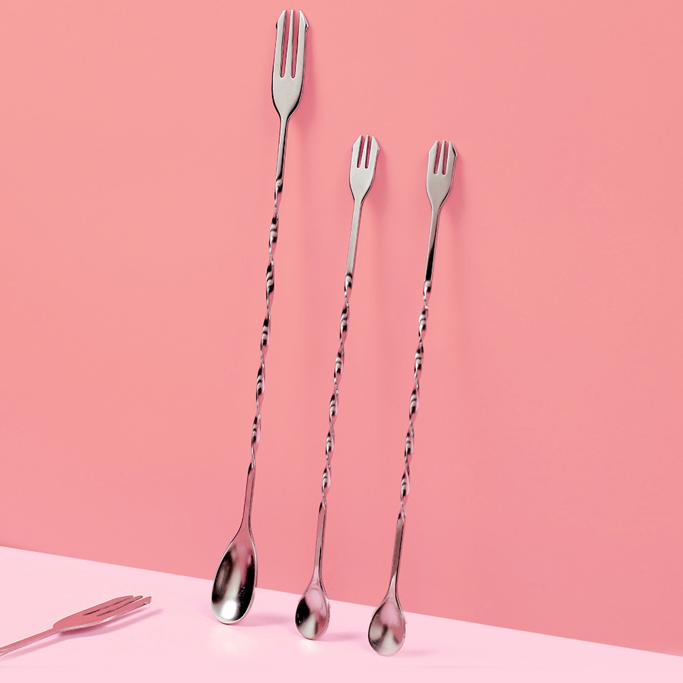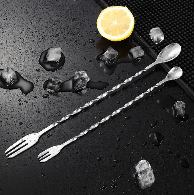 - Một đầu có dạng thìa dùng để khuấy cocktail, một đầu có thanh nhọn dùng để ghim trái cây.
