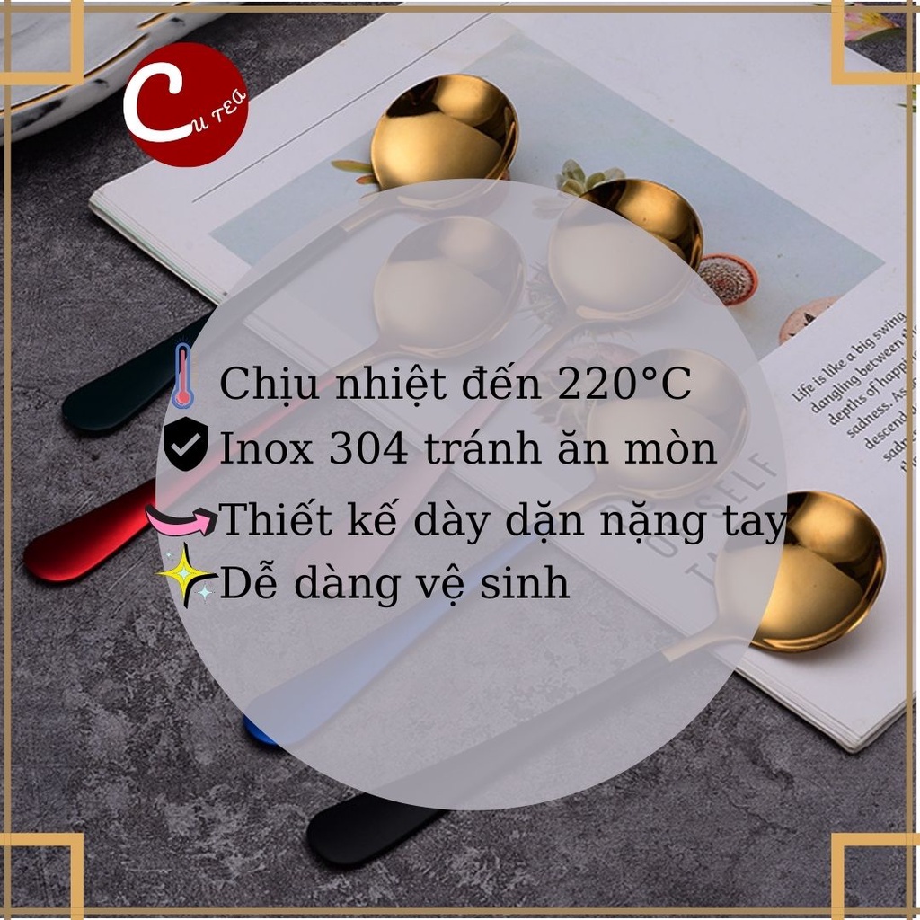 Thìa inox mạ vàng sang chảnh cao cấp Hàn Quốc, Muỗng dễ thương inox cán dài nhiều màu ăn cơm văn phòng CUTEA- Thìa Inox mạ vàng cao cấp với thiết kế tròn, rộng phù hợp khuôn miệng, dễ dàng xúc cơm, soup, cháo...