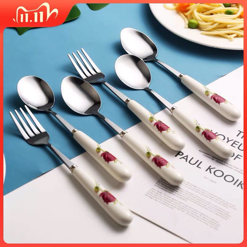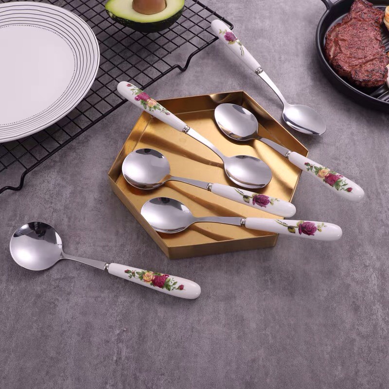 - Phần cán thìa / dĩa làm bằng chất liệu sứ cao cấp với thiết kế vừa vặn, hạn chế trơn trượt khi cầm.